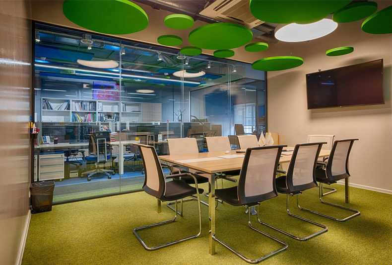 Декоративно-акустическим панелям Soundec можно придать разную форму – гексагон, треугольник, квадрат и др., а также окрасить в любые цвета. Поэтому они могут стать естественным продолжением отделки стен и потолков, или наоборот, превратиться в яркий акцент.