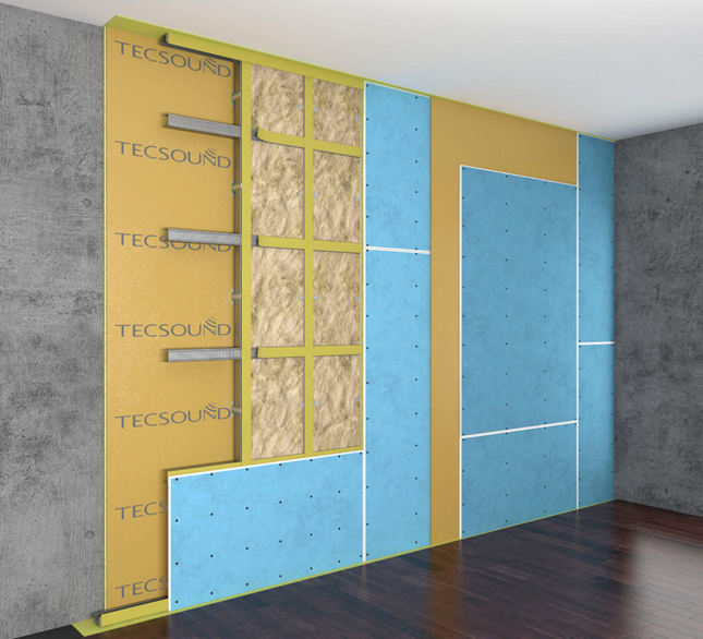 В звукоизоляции также применяются массивные древесно-волокнистые панели с мелкодисперсным кварцевым наполнителем. Они представляют собой каркас из плотного гофрированного картона, который заполнен мельчайшим кварцевым песком. Жесткий наружный слой частично отражает звук, а прошедшая звуковая волна теряет энергию в столкновении с песчинками.