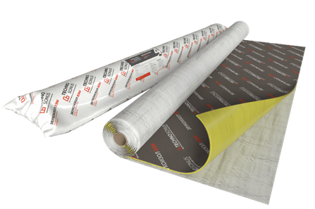Другой тип материалов – плотных и тяжелых – работает на отражение звука. К ним относятся звукоизоляционные мембраны – эластичный рулонный материал с большой массой и плотностью. Вес мембраны – важная характеристика, поскольку чем тяжелее преграда, тем сложнее звуковой волне «раскачать» ее. При этом толщина полотна остается минимальной (до 5 мм), что позволяет улучшить характеристики звукоизолирующей обшивки, практически не меняя ее толщину.